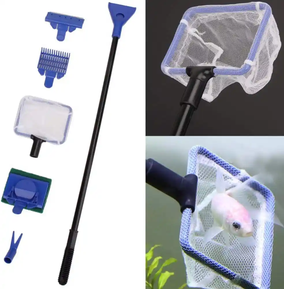 Akvariumo valymo rinkinys 5in1 su keičiamais antgaliais – viskas, ko reikia viename kotelyje