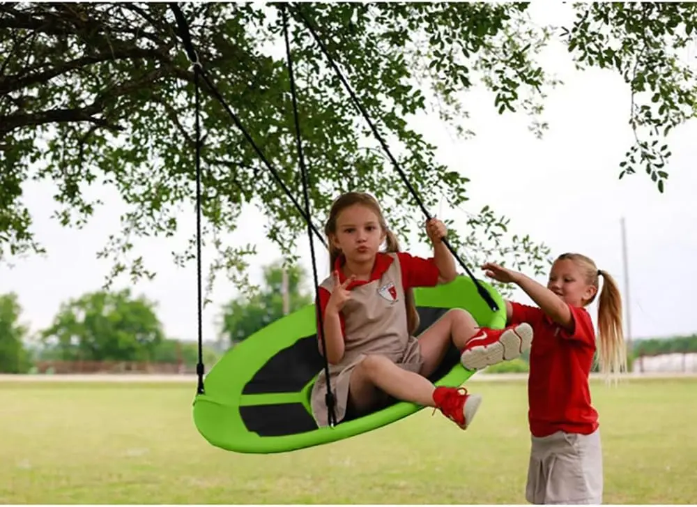 Didelės sūpynės „gandro lizdas“ 120 cm, iki 150 kg suteikia daugiau erdvės patogiam supimuisi ir aktyviam žaidimui. Didesnis skersmuo leidžia vienu metu sūpuotis keliems vaikams, todėl žaidimas tampa dar smagesnis.