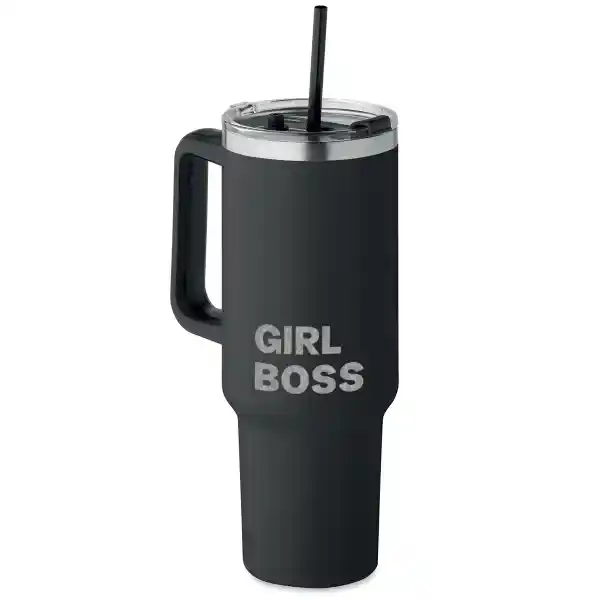 Didelis termopuodelis Girl Boss, 1200 ml – skirtas tiems, kuriems reikia daug gėrimo ir nulio kompromisų. Talpus, tvirtas ir sukurtas kasdieniam naudojimui – darbe, kelionėje ar sporto salėje.