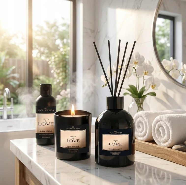 Rinkinį sudaro kvapų difuzorius, sojų vaško žvakė bei šampūnas ir dušo želė 2in1. Kvapas – šiltas, sodrus ir jaukus, su medienos ir švelniai saldžiomis natomis, dažnai apibūdinamas kaip prabangus ir ramus. Tai aromatas, kuris padeda sukurti namų SPA pojūtį ir kviečia atsipalaiduoti.