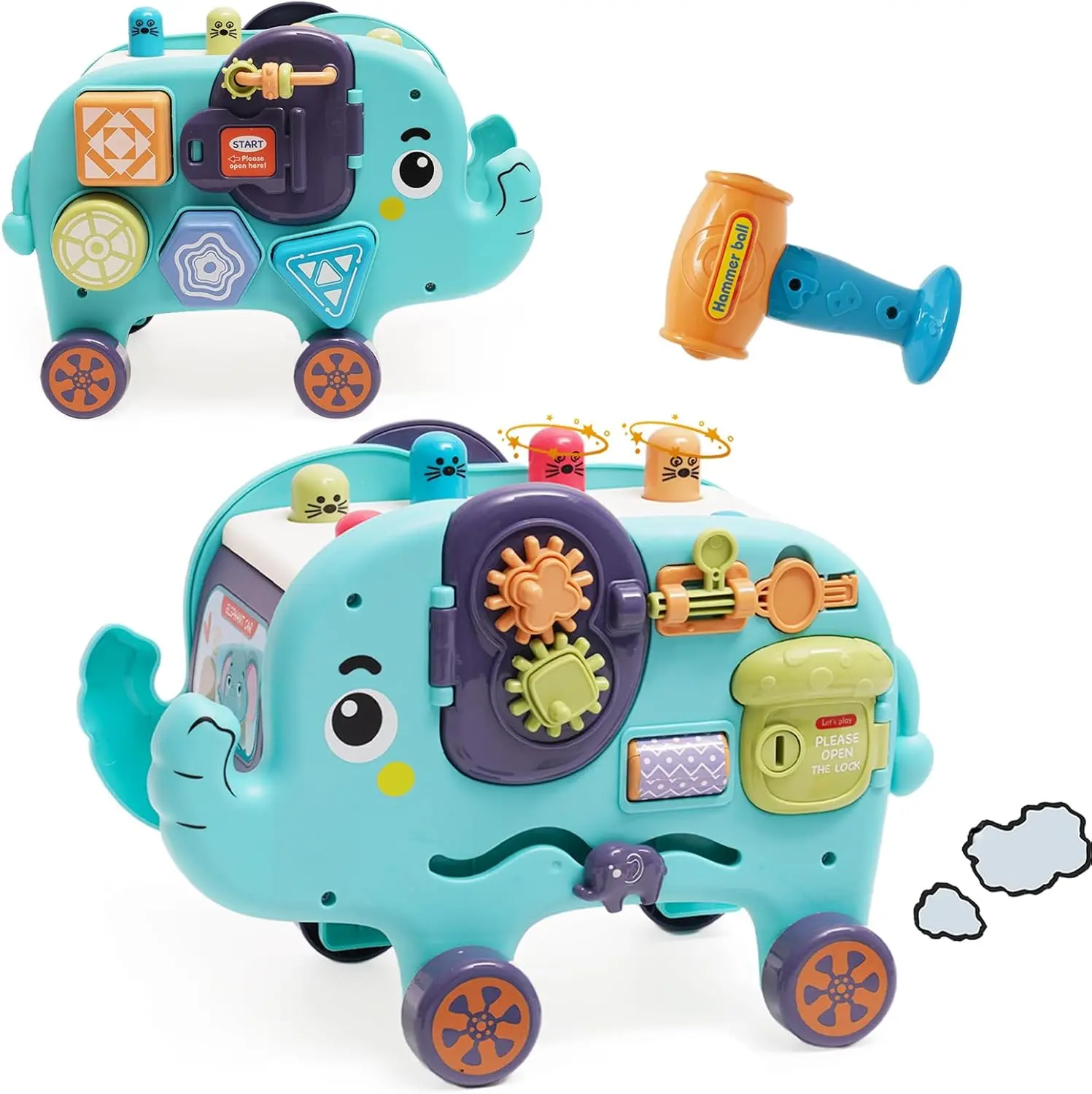 Drambliukas apjungia keletą veiklų – kalimą plaktuku, formų rūšiavimą, krumpliaračių sukimą ir lavinamuosius veiksmus. Skirtingos tekstūros, ryškios spalvos ir garsinis signalas padeda vaikui pažinti pasaulį per pojūčius, lavina susikaupimą bei kantrybę. Saugus ir tvirtas plastikas garantuoja ilgaamžiškumą ir patogų žaislo priežiūrą kasdien.
