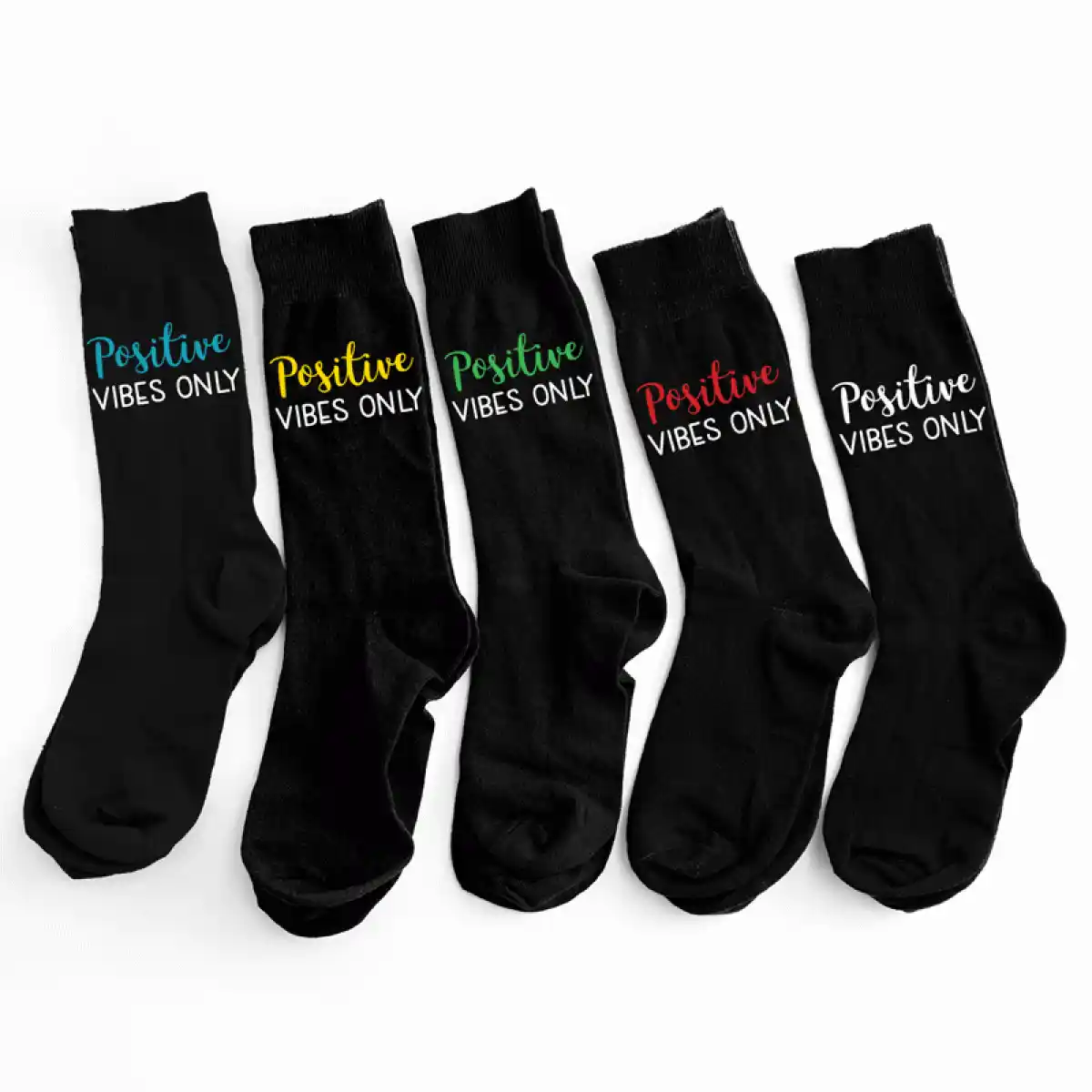 Kojinių rinkinys Positive vibes only – tai 5 poros kojinių su pozityviais užrašais ir dizainais. Sukurtas tiems, kurie mėgsta gerą nuotaiką, stilių ir nori tai parodyti net per smulkias detales.