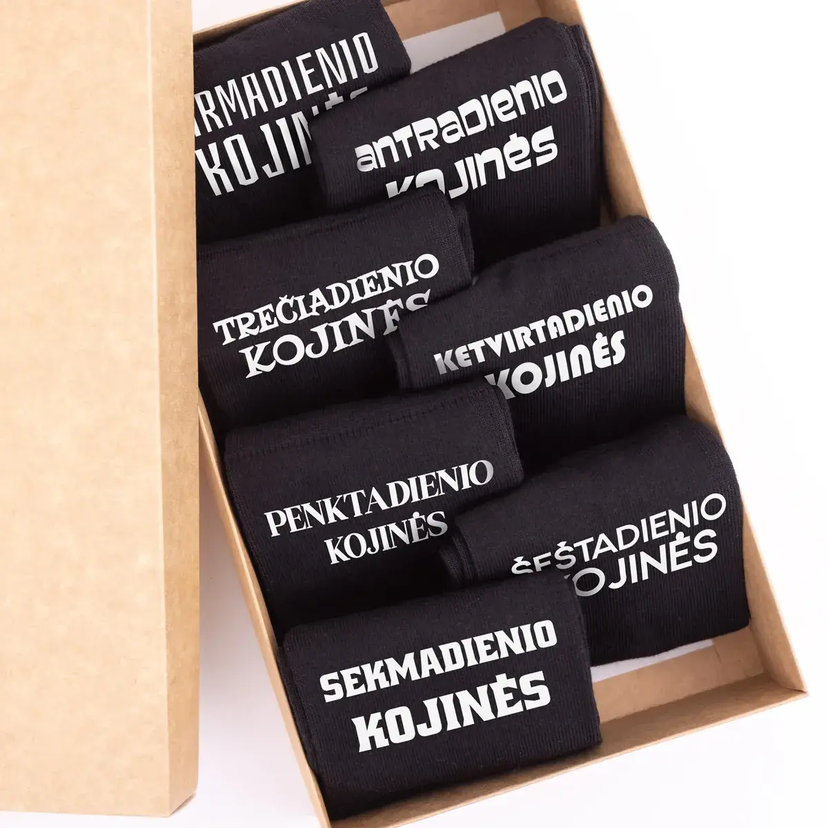 Kojinių rinkinys visai savaitei – tai praktiškas sprendimas, kai nenori kasdien galvoti, kur dingusios poros. Septynios poros – po vieną kiekvienai savaitės dienai.