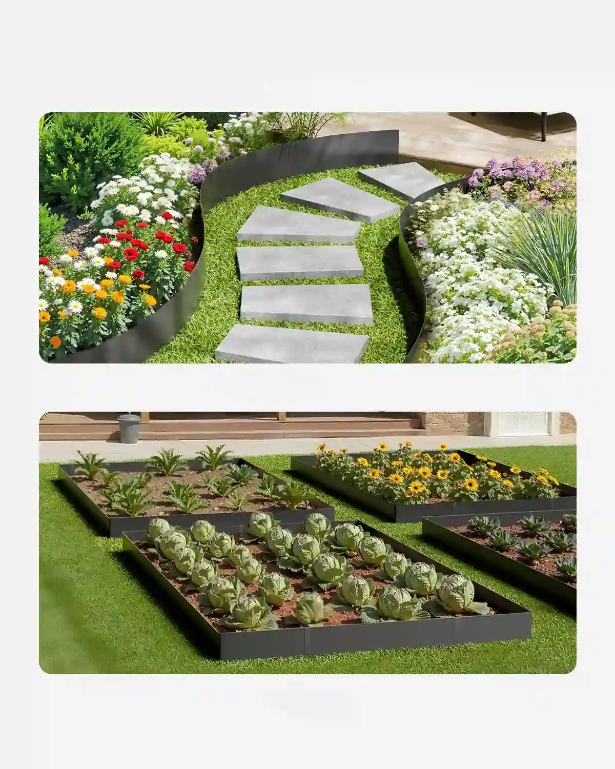 Lankstūs plieniniai lysvių borteliai, 6 vnt. – tvarkingam ir estetiškam sodo bei kiemo zonų atskyrimui