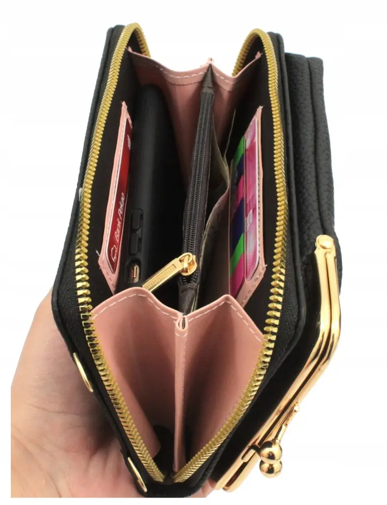 Mini rankinė telefonui su pinigine, juoda – patogiam svarbiausių daiktų nešiojimui kasdien