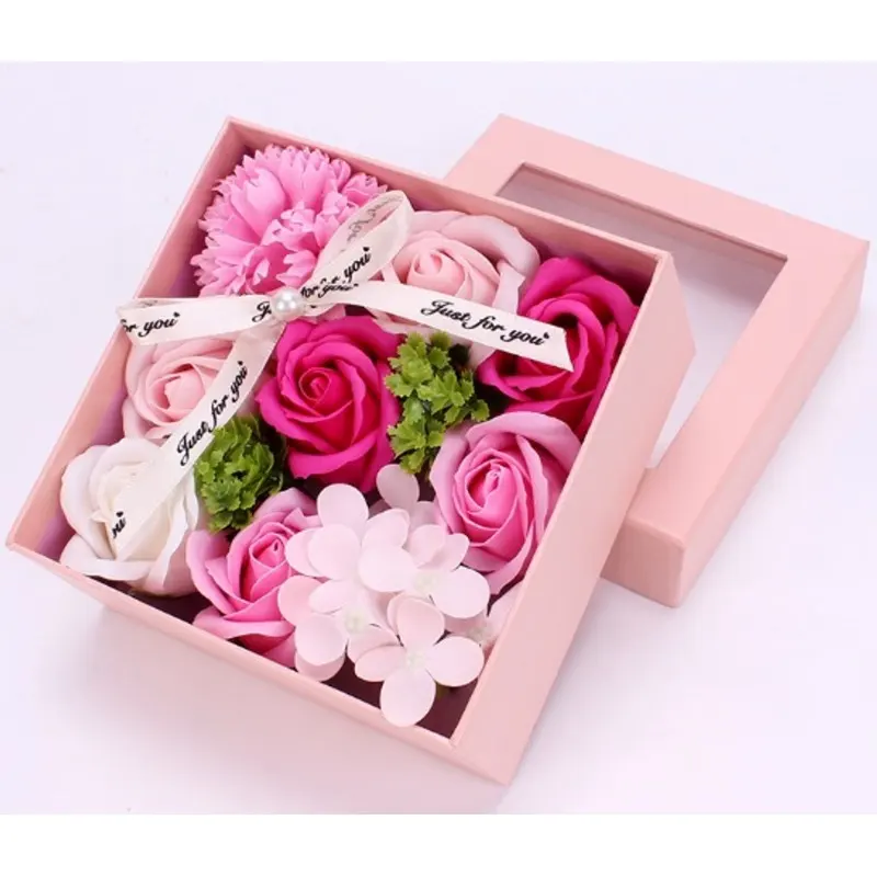 Muilinių gėlių dėžutė su kaspinu, kvadratinė, rožinė