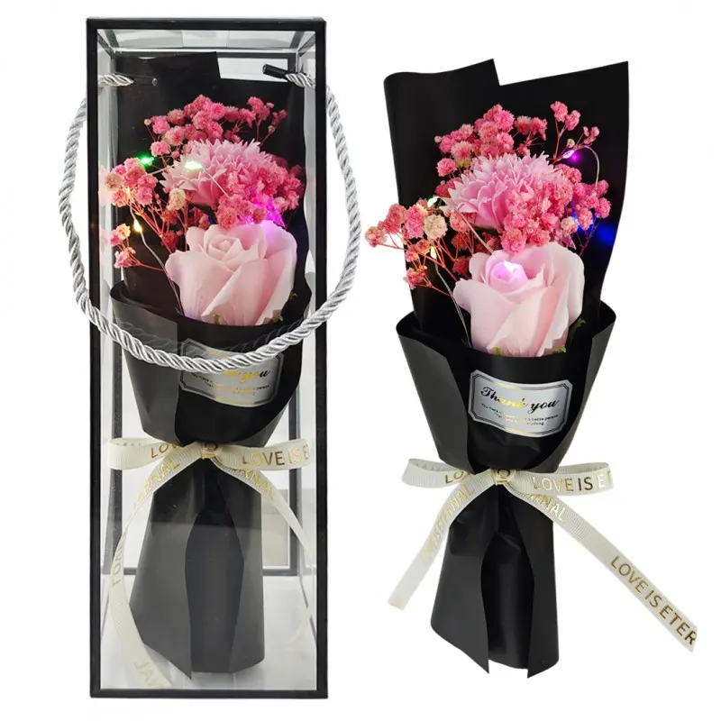 Muilinių gėlių puokštė su LED apšvietimu, rožinė