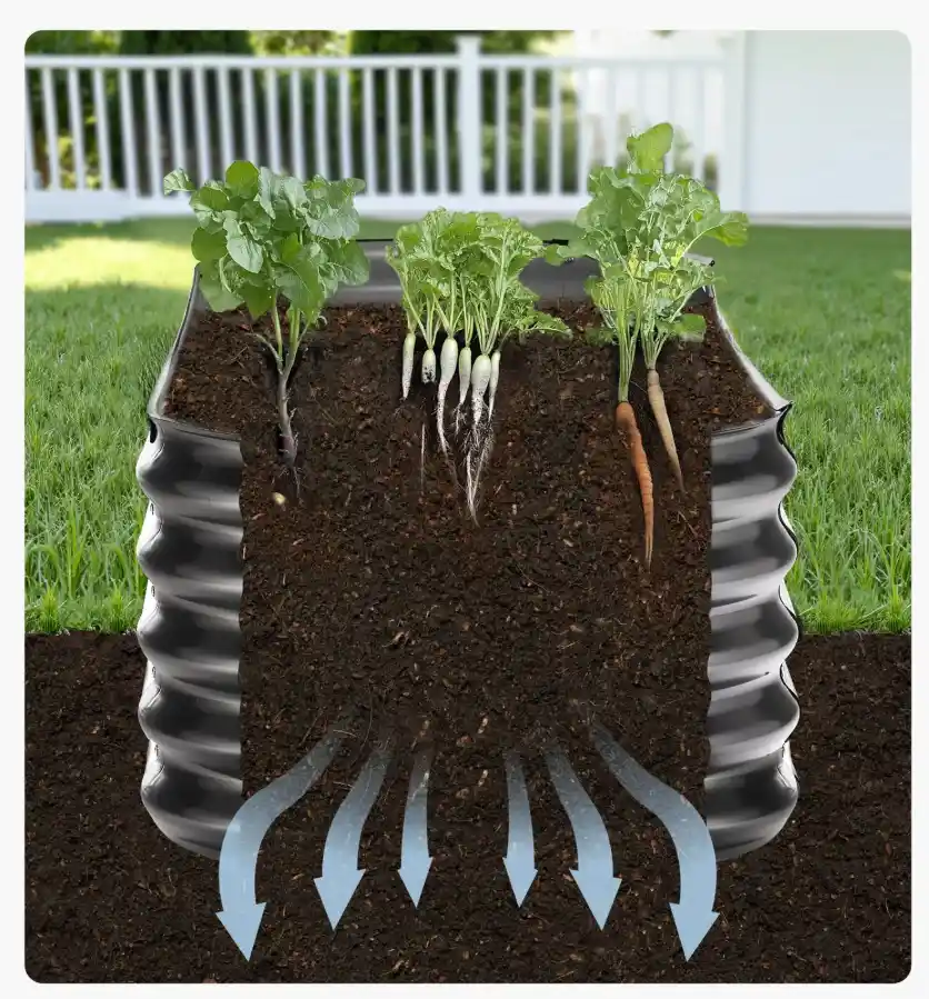 - Sustiprinta konstrukcija: vidiniai X formos sutvirtinimai padeda išlaikyti stabilesnę lysvės formą ir didesnį atsparumą grunto spaudimui.
