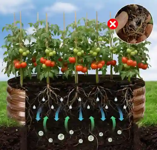 • Atviras dugnas: dugno nebuvimas padeda vandens pertekliui lengviau pasišalinti ir sudaro palankesnes sąlygas natūraliam šaknų vystymuisi.