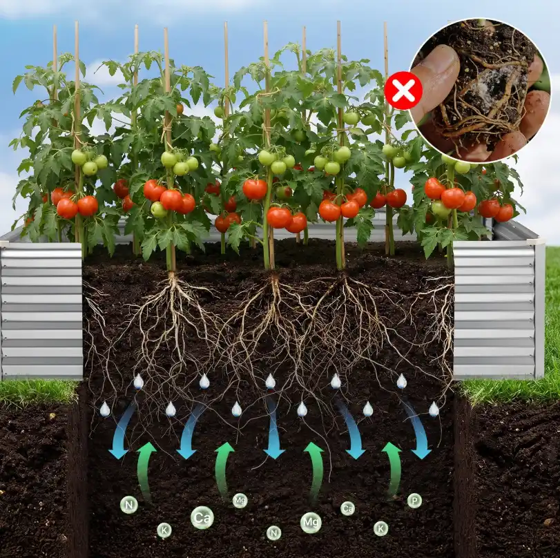- Aukštesnė konstrukcija: 62 cm aukštis leidžia suformuoti gilesnį sodinimo sluoksnį ir suteikia daugiau vietos šaknų augimui.