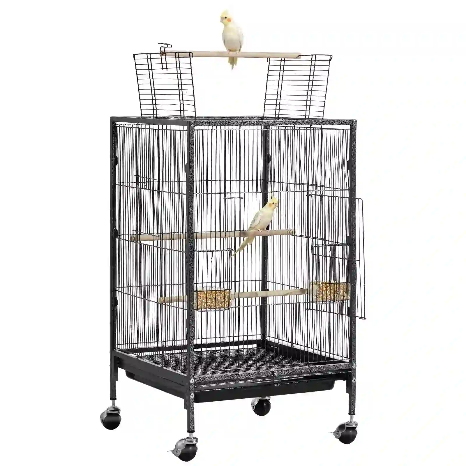 Paukščių narvas papūgoms su atidaromu viršumi ir ratukais 46x46x77 cm – patogi erdvė mažiems ir vidutinio dydžio paukščiams