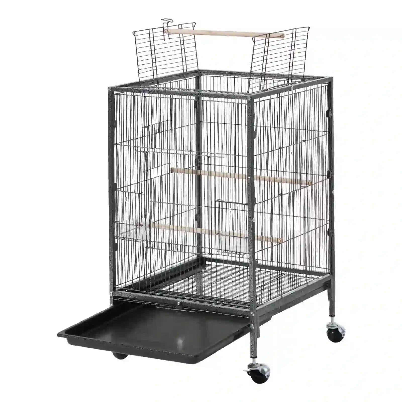 Paukščių narvas papūgoms su atidaromu viršumi ir ratukais 46x46x77 cm