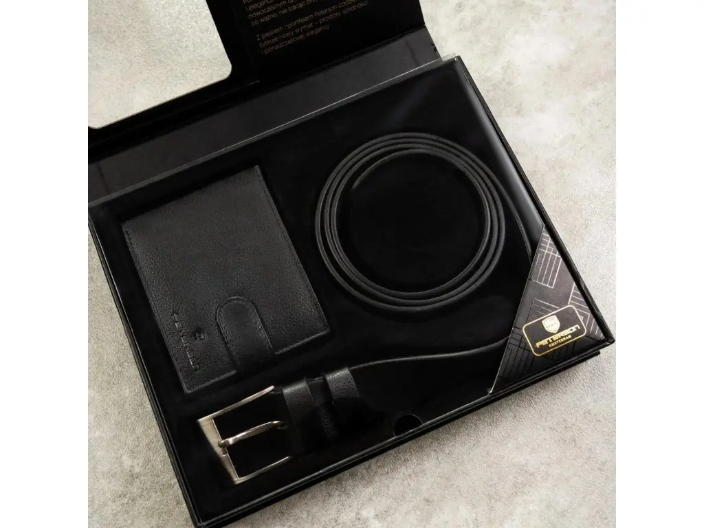 Pradžia Dovanos Peterson odinis rinkinys vyrams – piniginė ir diržas, N992L-SPDM-BW