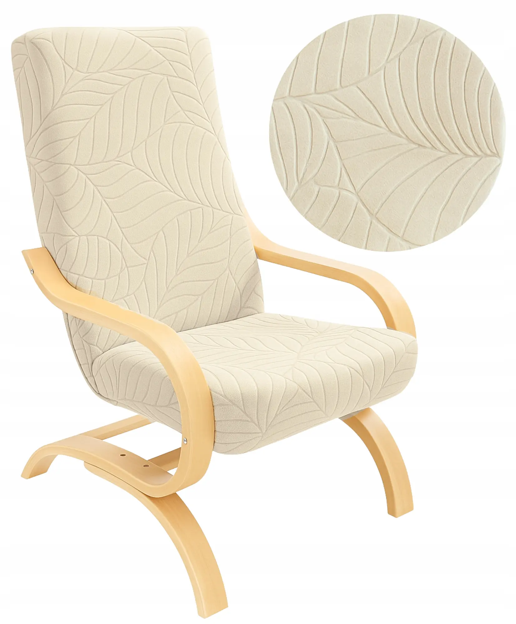 Smėlio spalvos fotelio užvalkalas su reljefiniu lapų raštu