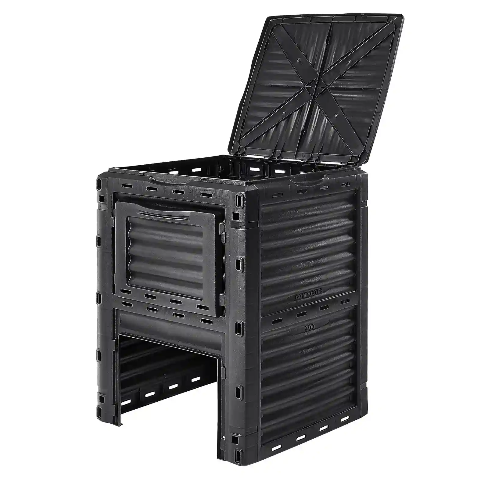 Sodo kompostavimo dėžė 300 l padeda paprastai ir tvarkingai kaupti organines atliekas bei paversti jas natūralia trąša sodui, daržui ar gėlynui. Talpi konstrukcija tinka lapams, žolei, augalų likučiams ir kitoms biologiškai skaidžioms sodo bei namų ūkio atliekoms. Juodos spalvos PP plastikas padeda geriau išlaikyti šilumą kompostavimo metu, o uždara forma leidžia palaikyti tvarkingesnę aplinką kieme ar sode.