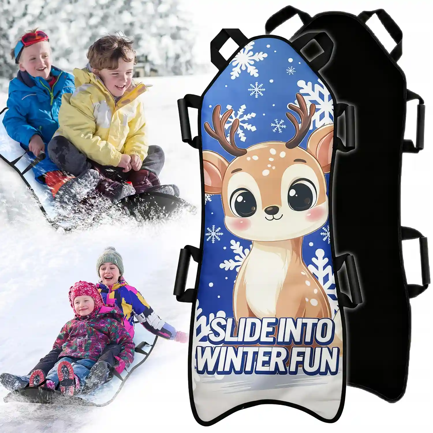 Sulankstomas sniego kilimėlis-čiuožynė skirtas smagiam ir saugiam vaikų čiuožimui žiemos metu. Lengva, minkšta konstrukcija ir patogūs laikymo sprendimai leidžia vaikams lengvai naudotis kilimėliu tiek čiuožiant, tiek nešantis jį į kalniuką.