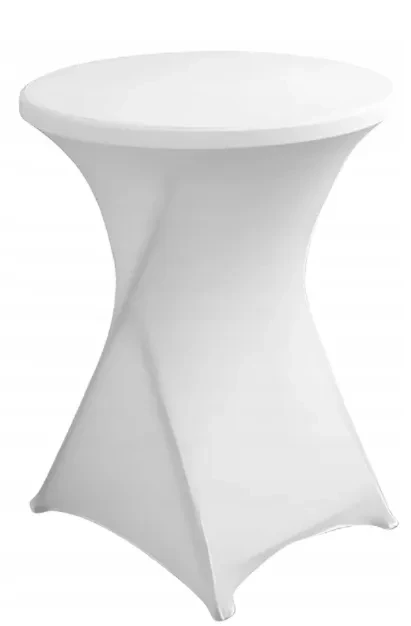 Užvalkalas pagamintas iš storesnio, elastingo ir malonaus liesti audinio, todėl gerai prisitaiko prie staliuko formos ir dailiai priglunda. Balta spalva suteikia aplinkai švaros, lengvumo ir elegancijos, todėl užvalkalas puikiai tinka vestuvėms, pobūviams, konferencijoms, restoranams, viešbučiams ir kitoms progoms. Užvalkalą galima skalbti skalbimo mašinoje, todėl jo priežiūra paprasta. Prieš perkant rekomenduojama tiksliai išmatuoti staliuką ir palyginti matmenis su schema. Užvalkalas tinka baro staliukams, kurių matmenys yra apie 80 x 110 cm.