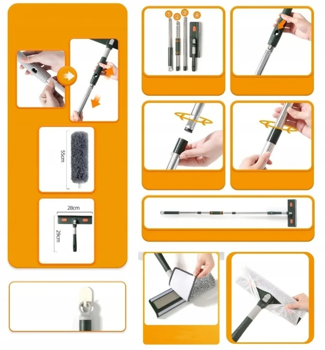 Teleskopinis langų valytuvas 3in1 – patogus sprendimas greitam ir efektyviam langų valymui be dryžių. Reguliuojamas ilgis leidžia lengvai pasiekti aukštus ar sunkiai prieinamus langus be kopėčių ar papildomų įrankių.