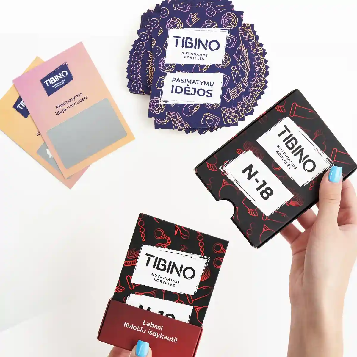 TIBINO nutrinamų kortelių komplektas „N-18“ ir „Pasimatymų idėjos“