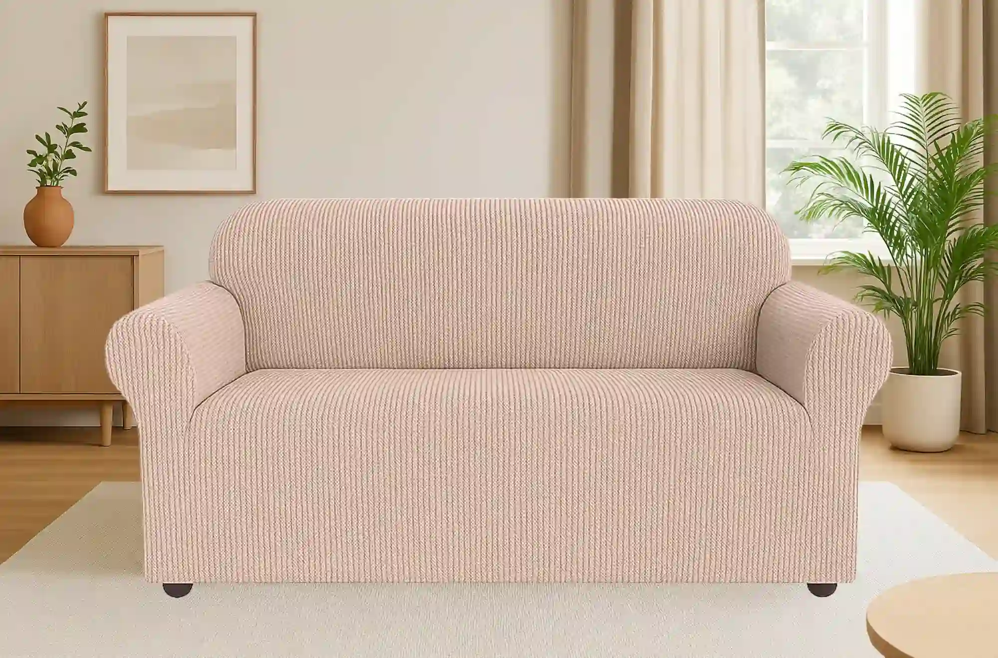 Trivietis tamprus sofos užvalkalas su dryžuotu paviršiumi, smėlio spalvos, 190–230 cm – praktiškas sprendimas norint greitai atnaujinti sofos išvaizdą ir apsaugoti ją nuo kasdienio nusidėvėjimo. Šis sofos užvalkalas padeda paslėpti dėmes, nutrinimus ir kitus naudojimo pėdsakus, todėl baldas atrodo tvarkingiau ir ilgiau išlaiko estetišką išvaizdą.