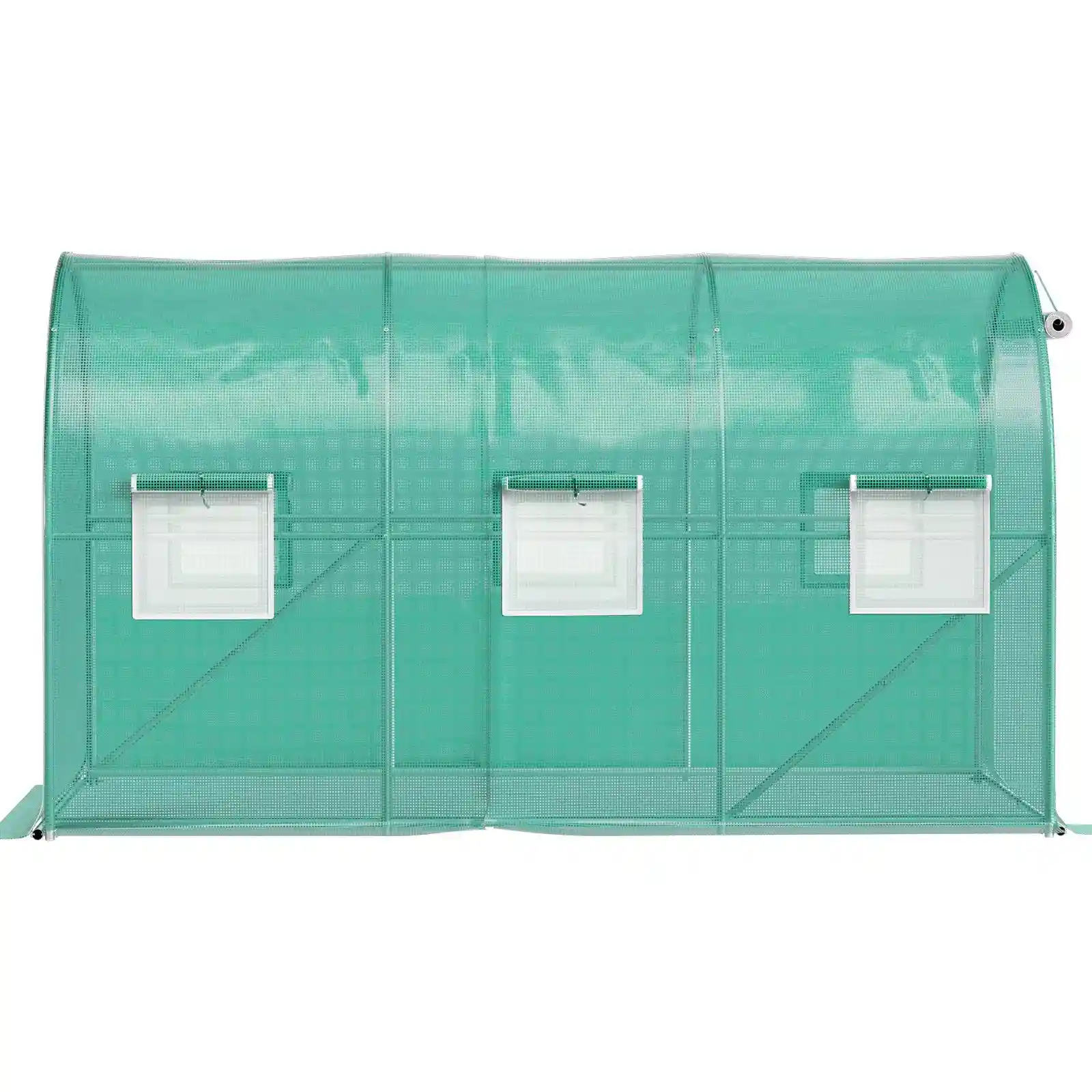 Šiltnamis turi cinkuoto plieno rėmą, kurio vamzdžių skersmuo siekia apie 2 cm, o storis – apie 0,51 mm, todėl konstrukcija yra tvirtesnė ir stabilesnė. Viršutinė atrama ir dvi įstrižinės atramos padeda geriau sutvirtinti visą konstrukciją ir sumažinti apkrovų poveikį. PE danga padeda apsaugoti augalus nuo lietaus, vėjo ir ultravioletinių spindulių, o 6 tinkliniai langai ir užsegamos durys pagerina oro cirkuliaciją bei prieigą prie augalų. Komplekte esantys tvirtinimo elementai padeda šiltnamį saugiau pritvirtinti ir lengviau sumontuoti.