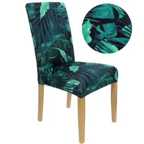 Universalūs kėdžių užvalkalai su tamsių lapų raštu, 4 vnt.