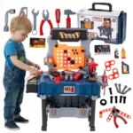 Vaikiškas meistro rinkinys su darbastaliu ir 65 įrankiais leidžia vaikui pasijusti tikru meistru: sukti, kalti, pjauti ir „remontuoti“ taip, kaip daro suaugusieji. Lagaminas, kuris lengvai transformuojamas į darbastalį, suteikia patogią vietą žaidimui ir padeda išlaikyti įrankius vienoje vietoje. Tai žaislas, kuris ne tik linksmina, bet ir lavina susikaupimą, kantrybę ir savarankiškumą.