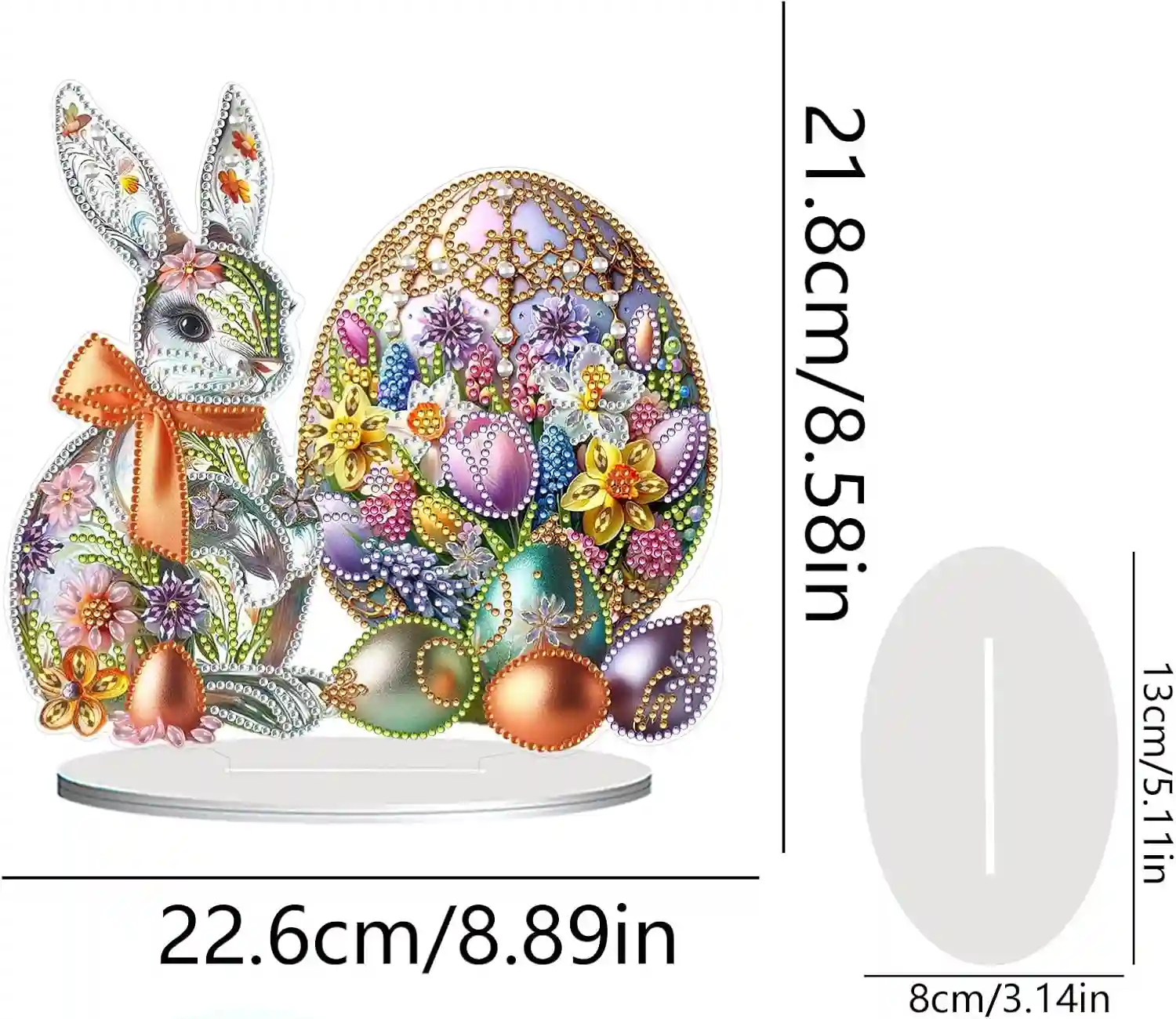 Velykinis kūrybinis rinkinys leidžia sukurti blizgančią dekoraciją su zuikiu ir margučiais. Ant akrilinės formos klijuojami spalvoti kristalai, kurie sudaro ryškų ir spindintį piešinį. Baigtas darbas gali būti naudojamas kaip stalo ar lentynos dekoracija Velykų laikotarpiu.