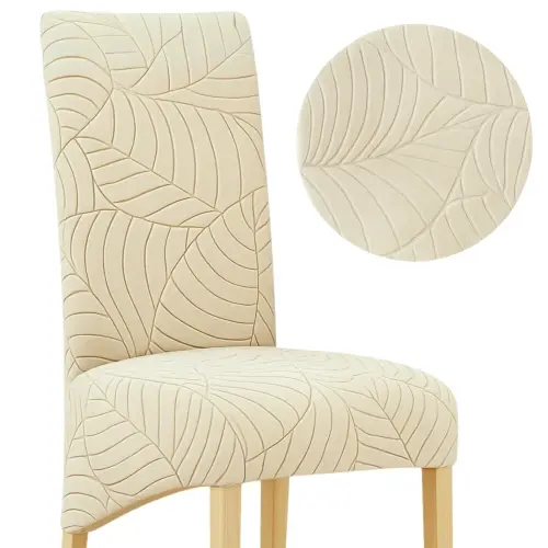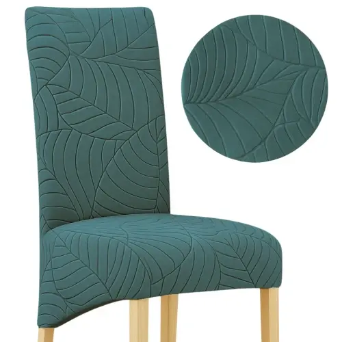 XL kėdžių užvalkalai su lapų raštu, 4 vnt. – praktiškas sprendimas norint greitai atnaujinti didesnių kėdžių išvaizdą ir apsaugoti jas nuo kasdienio nusidėvėjimo. Šie užvalkalai padeda paslėpti dėmes, nutrinimus ir kitus naudojimo pėdsakus, todėl kėdės atrodo tvarkingiau ir ilgiau išlaiko estetišką išvaizdą.