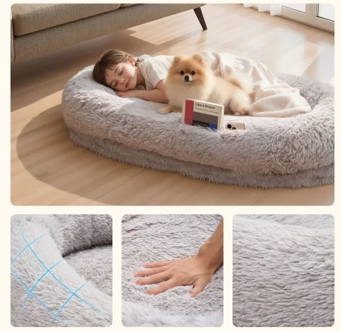 Žmogaus dydžio šuns guolis su memory putomis, pilkas sukurtas tiems, kurie nori patogios poilsio vietos sau ir savo augintiniui vienoje erdvėje. Didelis ovalus guolis su paaukštintais kraštais leidžia patogiai įsitaisyti skaitant, ilsintis, žiūrint filmus ar tiesiog leidžiant laiką kartu su šunimi. Pilka spalva lengvai dera prie įvairaus interjero, todėl guolis puikiai tinka svetainei, miegamajam, darbo kambariui ar kitai jaukiai namų vietai.