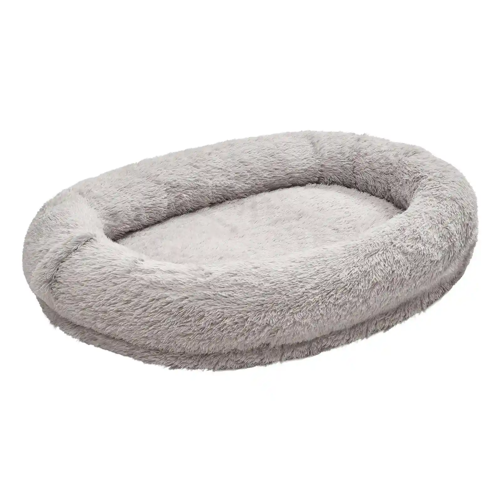 Žmogaus dydžio šuns guolis su memory putomis, pilkas – jaukiam poilsiui kartu su augintiniu namuose